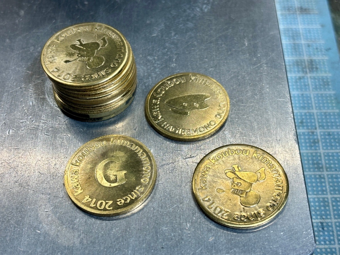 活動10周年なのでT. worksさん(@thousandthworks )に作っていただいたコイニングハンマーを使ってkimamamono金貨を作りました!!✨✨