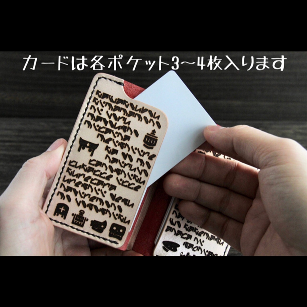名刺の枚数は厚みにもよりますが左右それぞれ10枚程ずつ入ります。カードであれば2〜3枚ずつであれば無理せず入るかと思われます。
